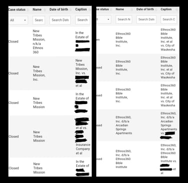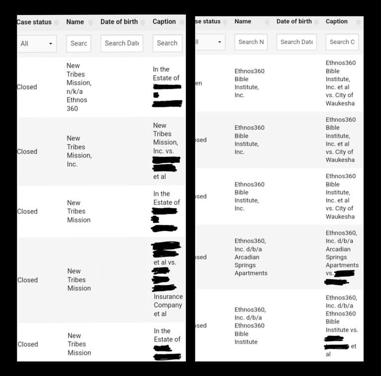 I find it fascinating that Ethnos360 leadership will tell members, students, survivors, and supporters that lawsuits should not be filed when the organization or its members are the defendants, but they seem to have no problem filing a lawsuit when the organization is the plaintiff. It's especially noteworthy since a few of these lawsuits are specifically filed by Ethnos360 Bible Institute while leadership there has allegedly told their students that filing a lawsuit against the organization is wrong. It seems a little too convenient.