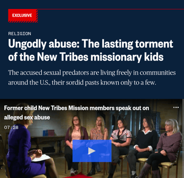 Ethnos360's response to the article claimed this was only a problem of the past, and the changes they have made are so significant there's no cause for concern, but I've already outlined situations that occurred long after the release of this NBC article, including their failure to be honest about abuses within their organization, their failure to name abusers even though they claim they do, and how they have quietly let people go who have gone on to abuse children. This is why I'm so grateful to MKs who are willing to tell their stories. There are hundreds of missionary kids still under the care of Ethnos360, and until true change and transparency exist, their safety is at risk.