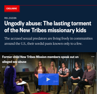 The article also outlines how Ethnos360 claims they reported these men's abuses to local law enforcement where they currently reside, but law enforcement refuted that assertion, saying they had never received such reports from Ethnos360. These women say none of the men who abused them ever faced criminal consequences and went on to live seemingly normal lives, with their communities unaware of their pasts. I can't imagine the courage required to publicly share their stories in this way. When asked if they were concerned this was still happening in Ethnos360, they all responded affirmatively and said that this concern was why coming forward with their experiences was so important. Please read the article to learn more about the gravity of what these MKs experienced and the many failures of Ethnos360 to prioritize MK safety and well-being.